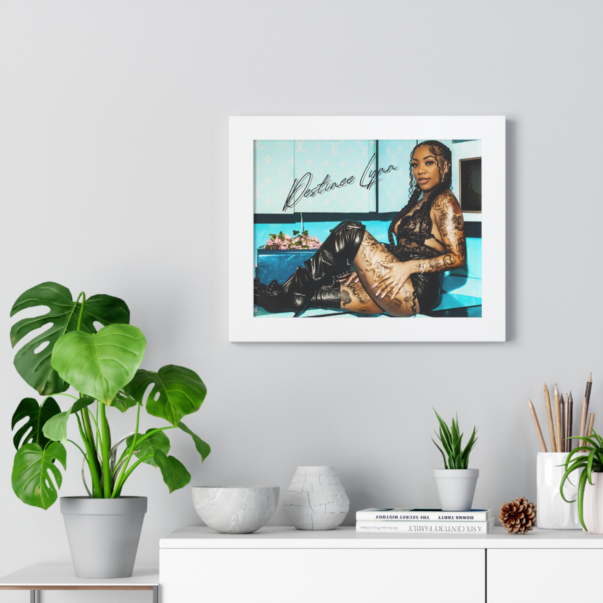 This framed horizontal poster brings bold, intimate energy into any room. Rich pigment inks and a matte, museum-grade paper finish keep colors vivid and skin tones true, while the protective acrylic cover and sturdy MDF frame give it a refined, gallery-ready presence. The pre-installed hanging hardware means it arrives ready to display — whether leaned on a shelf or mounted above a dresser. The look pairs modern edge with everyday elegance, a confident focal piece that elevates a bedroom, studio, or living space with curated attitude.