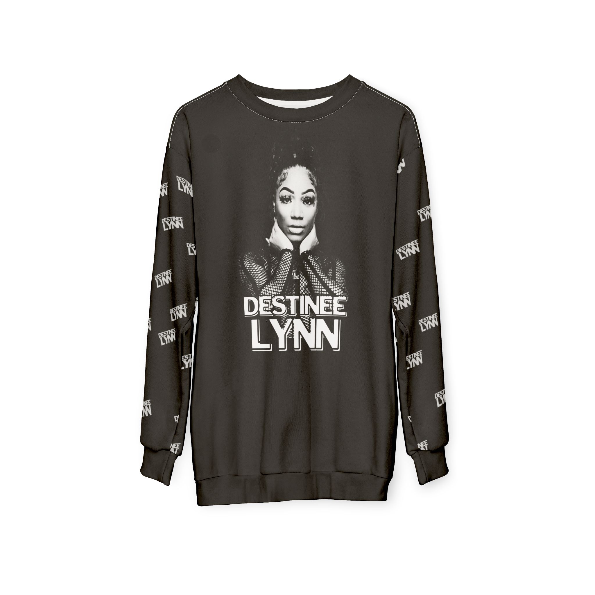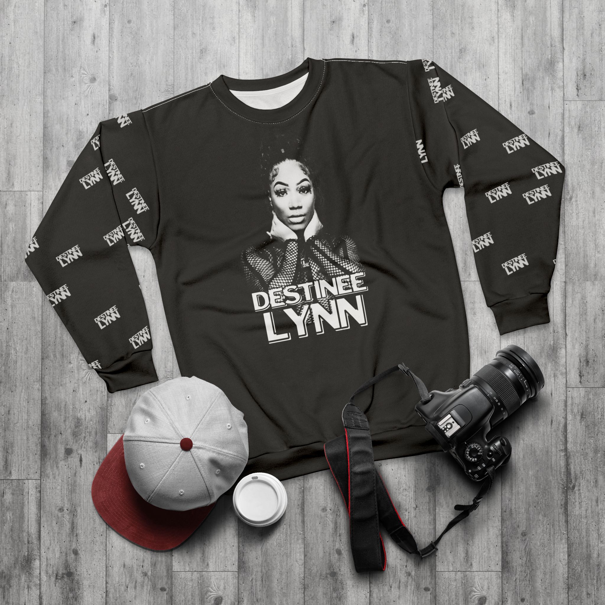 An all-over printed crew sweatshirt that channels bold, urban energy with a monochrome portrait and repeated name motif. The heavy-ink graphic on the front centers a strong, confident face framed by a subtle halftone texture, while the sleeves carry a repeated logo pattern for a streetwear edge. Soft to the touch yet structured, the medium-weight polyester holds vibrant prints and keeps lines crisp through wear. Wear it to stand out during late-night studio sessions, city walks, or low-key hangouts where expression matters more than blends-in basics.